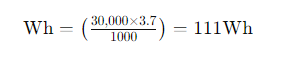 따라서 30,000mAh 용량의 배터리를 Wh로 변환하면 다음과 같습니다: