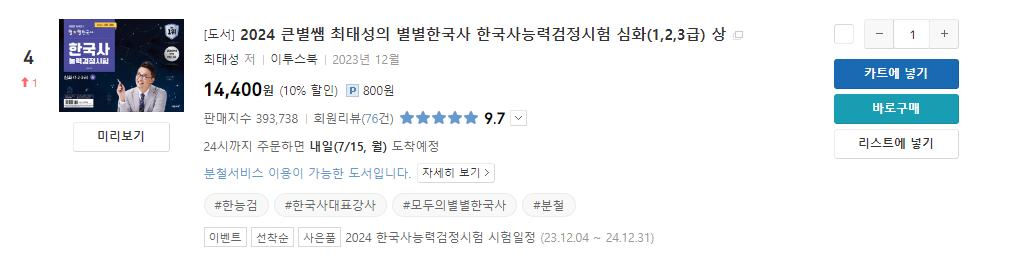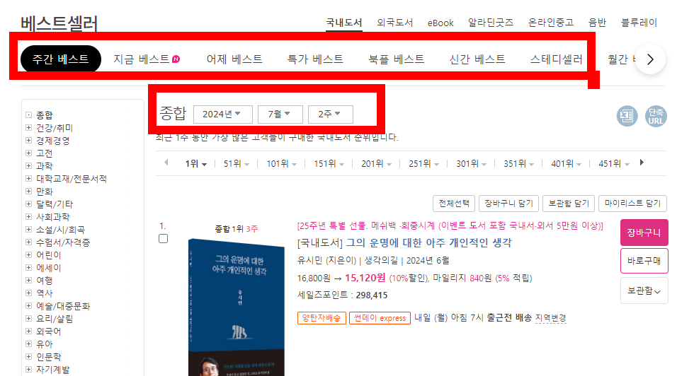 예스24 베스트셀러 순위