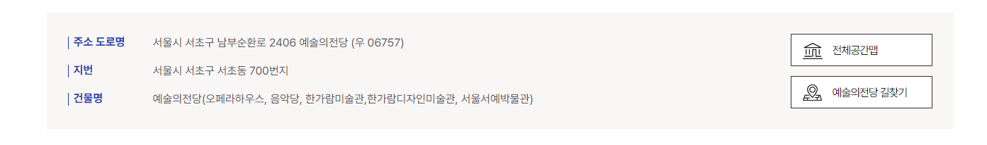 - 주소: 서울특별시 서초구 서초동 700 예술의전당 한가람미술관